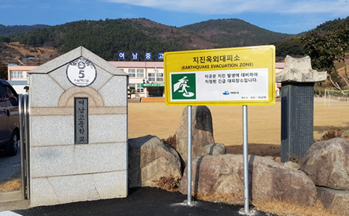 여수시가 이달 지역 63개 지진대피소에 지진대피소임을 알리는 안내표지판 설치를 완료했다.