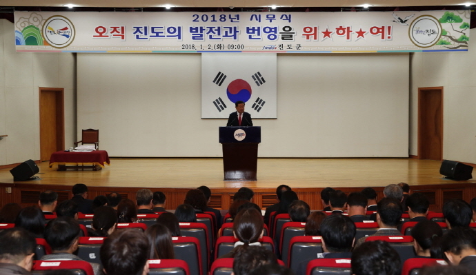 진도군이 2층 대회의실에서 본청을 비롯 직속기관·사업소 등 공직자 600여명이 참석한 가운데 지난 2일(화) ‘2018년도 시무식’을 개최하고 무술년(戊戌年) 새해 업무를 시작했다.