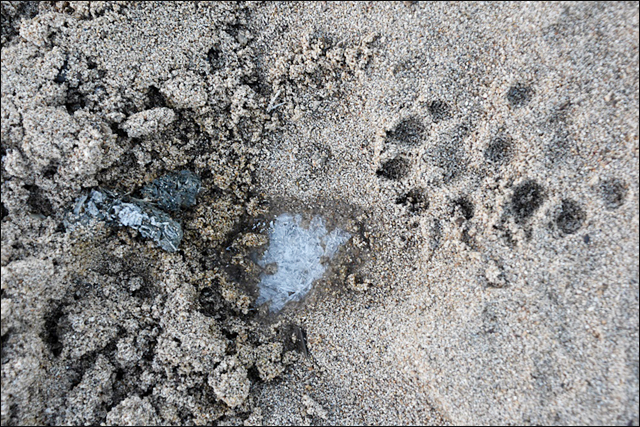 태양빛을 받은 모래톱 위에는 발자국이 선명하다. 발자국을 따라가자 배설물도 나온다. 이러저리 몸을 구르며 놀다간 흔적도 눈에 들어온다. 그랬다. 그것은 수중 생태계 최상의 포식자 바로 수달의 흔적들이었다.