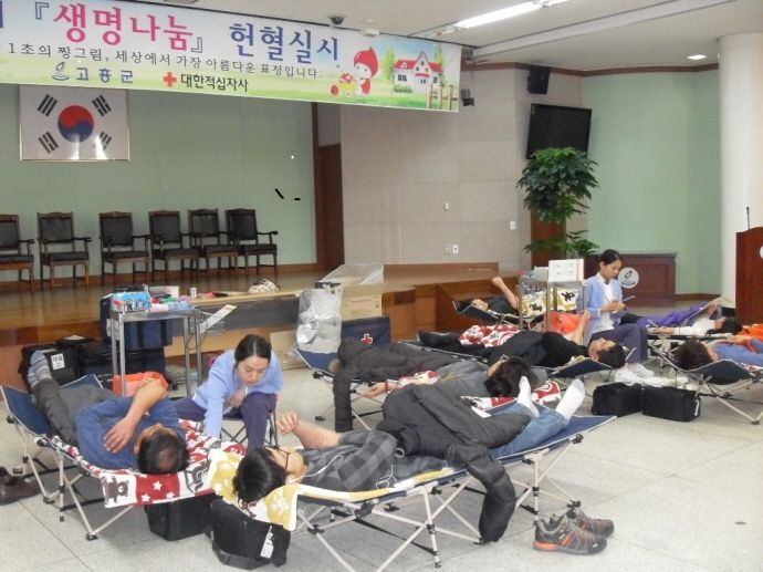 고흥군(군수 박병종)은 오는 9일 대한적십자사 광주·전남 혈액원주관으로 공직자, 유관기관 및 의료기관 종사자, 일반주민을 대상으로 '사랑나눔' 헌혈 행사를 갖는다.