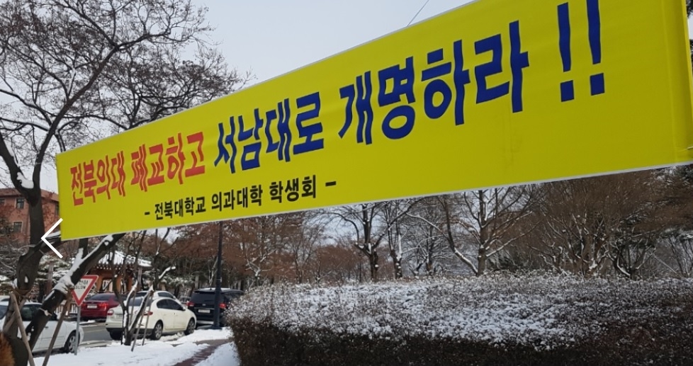 전북대학교는 서남대 의대생 특별편입학관련 “의과대 교수 총회에서 결정하면 그 결정을 수용하겠다”고 밝혀 지난 1월2일 의과대학에서 교수 총회 결과 과반 이상의 찬성을 받아 ‘서남대특별편입학’ 공고를 냈다.