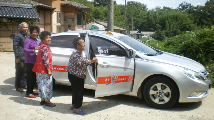 행복택시가 대중교통 이용 불편을 겪는 산간오지 마을 주민들에게 효자택시 역할을 톡톡히 하고 있다.