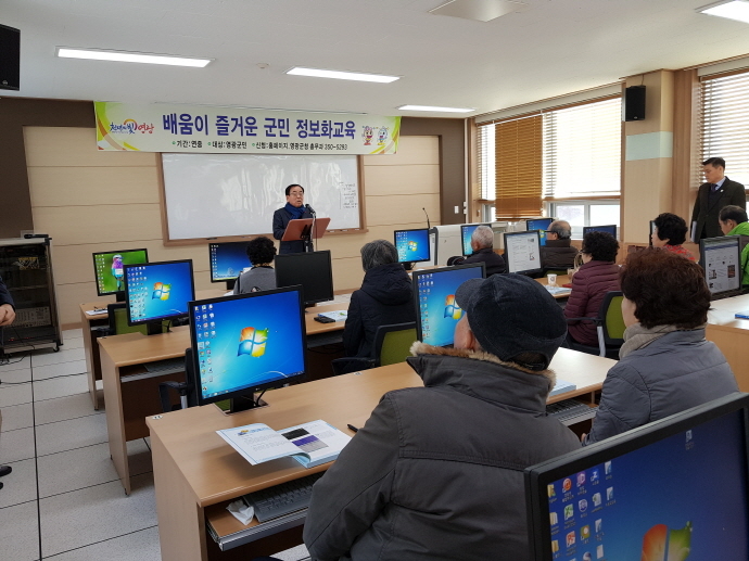 군에서는 컴퓨터 기초 및 인터넷, 한글, 엑셀, 블로그&SNS 외에 스마트 기기 보급 증가로 꾸준한 수요가 있었던 스마트폰 활용과 이미지 편집을 새롭게 신설하는 등 다양하게 정보화 교육 프로그램을 편성하여 12월까지 진행할 예정이다.