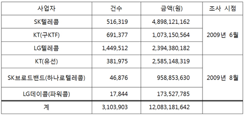 특히 이통3사의 경우 2007년 5월부터 300억 원의 과·오납 요금을 환급했지만 남아있는 83억여 원은 2008년 이후 줄어들지 않고 있다.