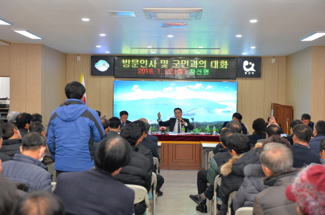 이날 군민과의 대화는 박영일 군수를 비롯해 류경완 도의원, 군의원, 기관단체장 등 주민대표 100여 명이 참석했으며, 지난해 건의사항 처리결과 보고, 읍·면정 보고, 군정 소개, 군민과의 대화 등의 순으로 진행됐다.