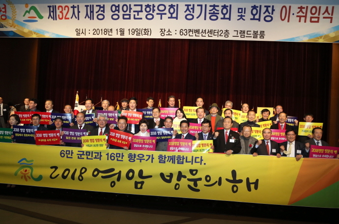 영암군(군수 전동평)은 지난 19일 서울 63빌딩에서 열린 재경영암군향우회 정기총회 및 회장단 이·취임식에서 1,500여명이 참석한 가운데‘2018 영암방문의 해’홍보를 펼쳤다.