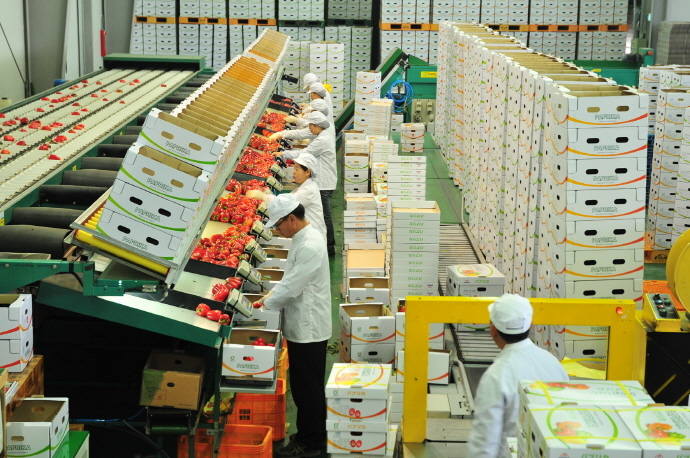 ▲농업회사법인 탐진들에서 직원들이 파프리카를 선별하고 있는 모습.