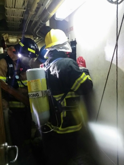 ▲잠재화재를 확인하는 소방관과 해양경찰관.