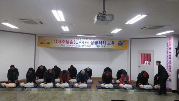 함평군 보건소(소장 박성희)는 지난 25일부터 다음달 2일까지(기간중 5일) 총 9회에 걸쳐 ‘심폐소생술 읍·면 순회교육’을 실시한다.