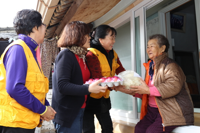 설 명절에도 찾아오는 가족도 없이 홀로 명절을 보내는 40여명의 어르신 집을 방문해 가래떡과 계란1판씩을 전달했다.