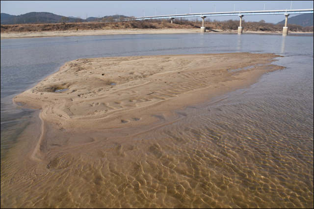 그런데 그 모래공급에 차질이 발생했다. 바로 마지막 4대강공사인 영주댐 때문이다. 내성천 중류를 틀어막은 영주댐이 낙동강으로 내려갈 모래를 틀어막고 있기 때문이다. 보조댐인 유사조절댐까지 만들어놓음으로써 하류로 내려가는 모래를 원천적으로 틀어막고 있다.