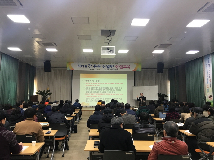 광양시가 지난 2월 7일 농업인교육관에서 감재배 농업인을 대상으로 품목별 농업인 상설교육을 갖고 역량강화에 나서고 있다.