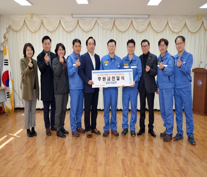 포스코 설비기술부(부장 조찬주)가 지난해 12월 사랑나눔 일일 호프데이로 모은 수익금을 광영동 취약계층에 전달한데 이어, 부서 산하 농기계수리봉사단이 동절기 어려운 이웃들을 위한 따듯한 후원의 손길을 전달했다.