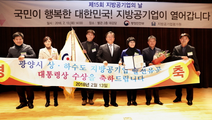 광양시 상·하수도 지방공기업이 행정안전부에서 주관하는 지방공기업의 날 행사에서 전국 최우수기관으로 선정돼 대통령 기관표창을 받는 영예를 안았다.