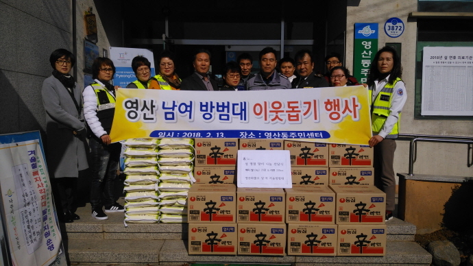행사를 지원한 서현승 영산동장은 “방범대원들의 따듯한 정성으로 복지 사각지대에 놓여 외롭게 생활하는 지역 소외된 이웃이 보다 따듯한 명절을 보낼 수 있게 됐다”고 감사 인사를 전하며, “오늘 나눔을 계기로 동민 모두가 서로를 배려하고 응원하는 행복하고 살기 좋은 영산동을 만들어 가도록 최선을 다하겠다”고 다짐했다.