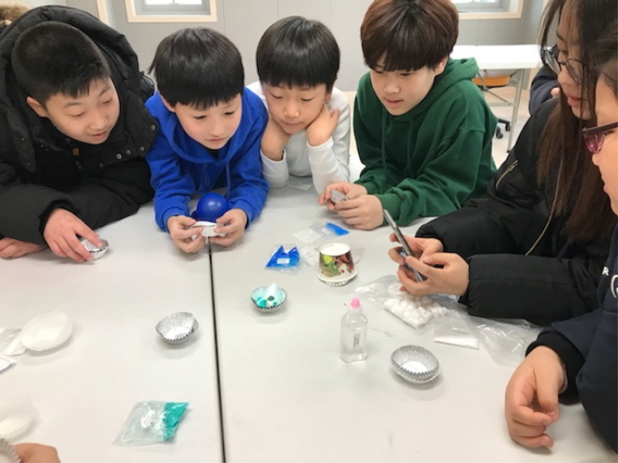 ▲강진군청소년문화의 집이 겨울방학을 맞아 청소년들의 생활편의 증진과 문화·수련·체험활동을 기회를 확대하고자 겨울특강 프로그램을 진행하고 있다. 초등학교 5~6학년 대상으로 각종 실험을 직접 진행하며 과학에 대한 관심과 진로탐색의 계기가 마련하고자 시작했다.