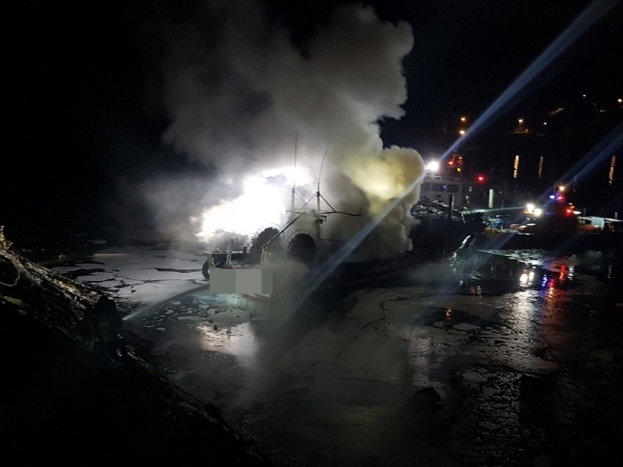 3일 오전 2시 26분경 여수시 돌산읍 율림리 대율항에 정박 중인 어선에서 화재가 발생했다.
