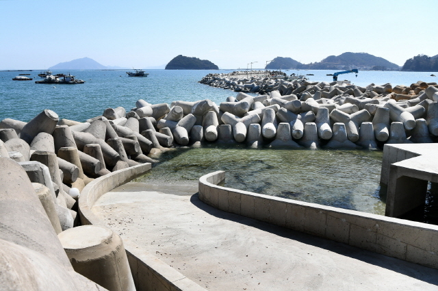 초전 자연재해위험지구 정비사업은 사업비 28억 원을 투입해 초전항 일원을 대상으로 파도 유입을 차단하는 방파제를 길이 50미터, 폭 9미터 연장하고 테트라포트 12.5t급 1688개를 제작, 거치해 보강했다.