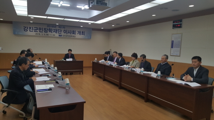 전남 강진군민장학재단이 지난 6일 강진군청 소회의실에서 강진원 이사장을 포함한 임원 15명이 참석한 가운데 2018년 제1차 이사회를 개최했다.