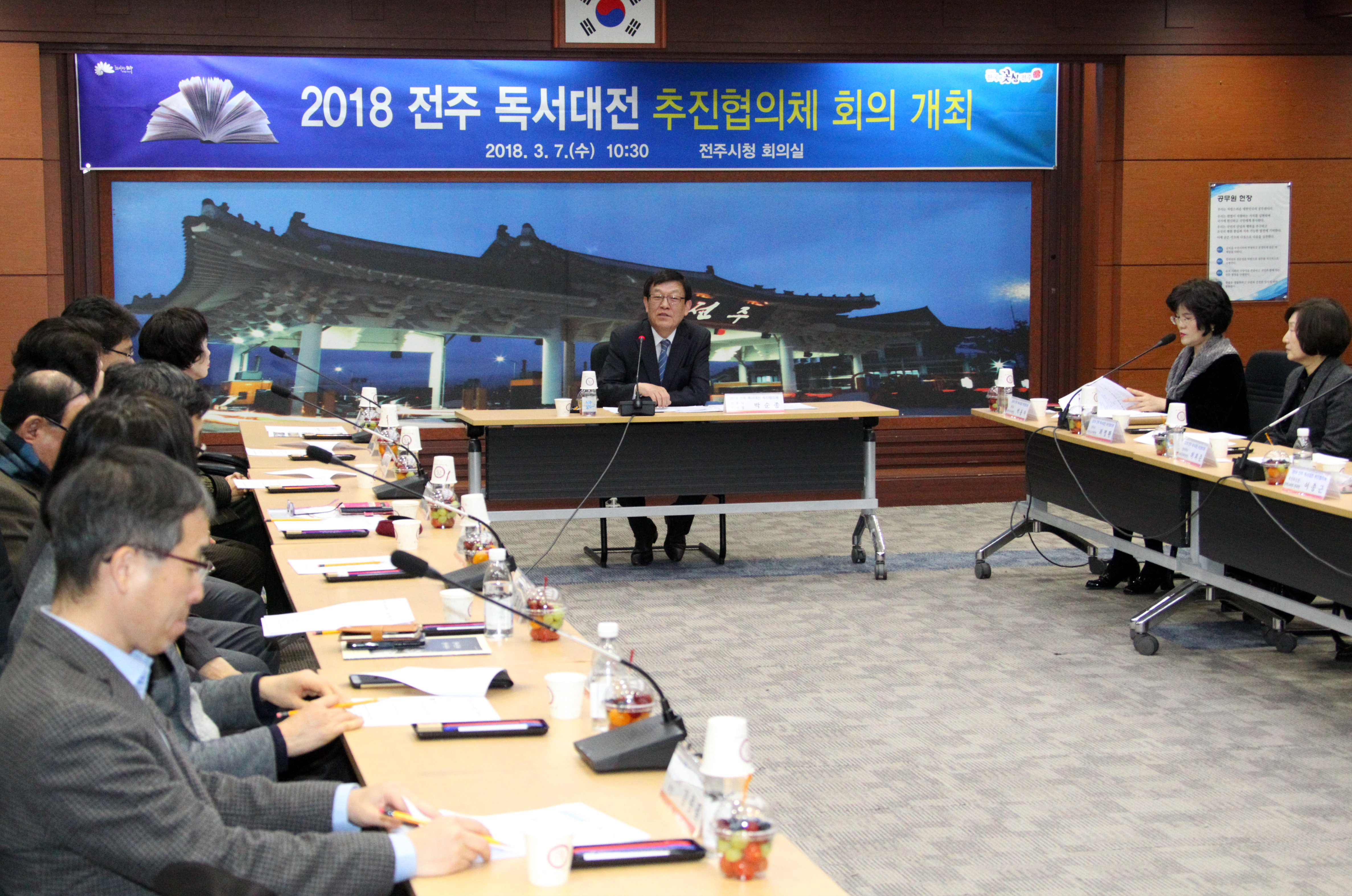 전주시는 7일 시청 회의실에서 전주지역 도서관 관계자와 독서·출판·서점 관계자, 문화계 인사 등 독서생태계를 대표하는 20명이 참석한 가운데 ‘2018 전주 독서대전 추진협의체’를 발족식 및 첫 회의를 개최하고, 독서대전 준비를 본격화했다.