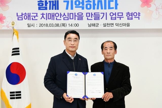 경남 남해군은 군내 설천면 덕신마을과 ‘치매안심마을 만들기’ 업무 협약을 체결했다.