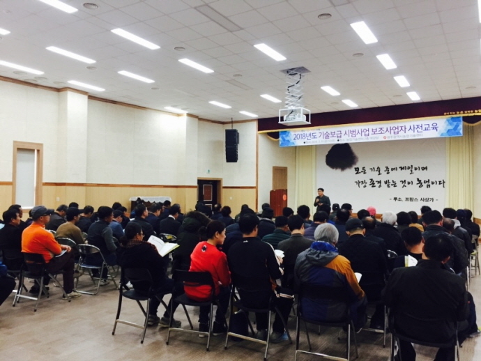 광주광역시 농업기술센터는 9일 농업기술센터 2층 대강당에서 2018년 기술보급 시범사업에 선정된 70여 명을 대상으로 사전교육을 했다.
