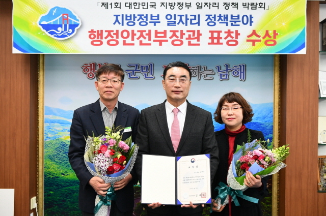 경남 남해군은 지난 8일부터 11일까지 나흘간 일산킨텍스에서 개최된 ‘제1회 대한민국 지방정부 일자리 정책 박람회’의 지방정부 일자리 정책분야에서 행정안전부장관 표창을 수상하는 영예를 안았다.