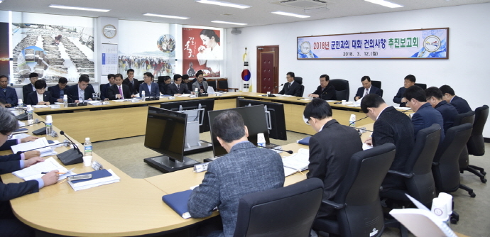 진도군이 군청 상황실에서 2018년 군민과의 대화 건의사항 추진상황 보고회를 지난 12일 개최했다.