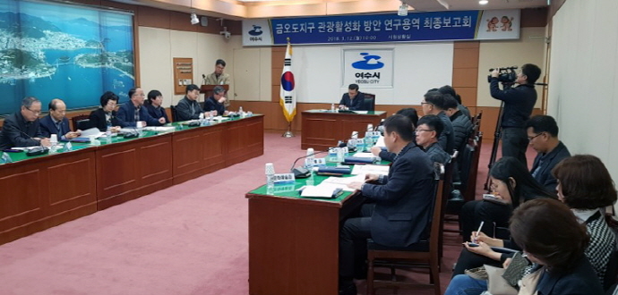 여수시에 따르면 지난 12일 시청 상황실에서 금오도지구 관광활성화 방안 연구용역 최종보고회가 열렸다.