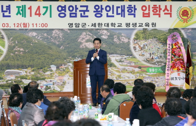 영암군 왕인대학은 어르신들을 위해 평생학습의 일환으로 2005년부터 종합사회복지관에서 운영해오고 있는 1년 과정 프로그램으로, 1기부터 13기까지 배출한 수료생은 1,580명에 달하며, 금년에도 60세이상 120명이 입학, 2018년 제14기 왕인대학 연간 과정의 시작을 알렸다.