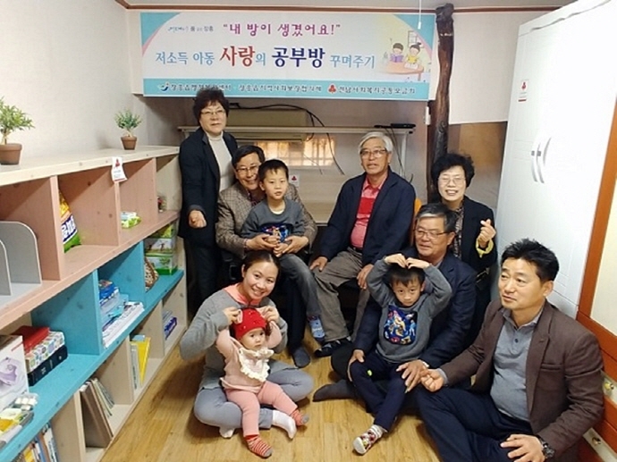 전남사회복지공동 모금회의 지정 기탁금 4백5십만원을 들여 도배·장판을 교체하고, 책상, 옷장, 수납장 등 가구를 갖춘 공부방을 선물했다.