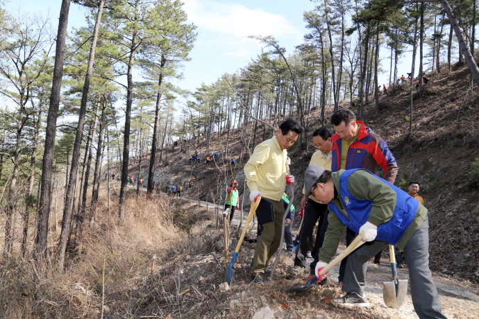 ‘군민이 심는 나무! 함께할 휴양숲 조성’이라는 주제 아래 700여명의 유관기관, 사회단체, 군민이 참여한 가운데 5ha의 산림에 단풍, 산벚, 느티나무 등 경관수종 3,000주를 식재한 후 나무심기에 참여한 군민에게 자두, 대추, 살구나무를 무료로 나누어주었다.