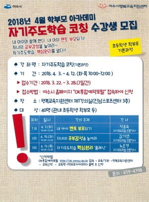 일정은 내달 3일·10일·12일이며 여수시 행복교육지원센터 제1강의실에서 진행된다.