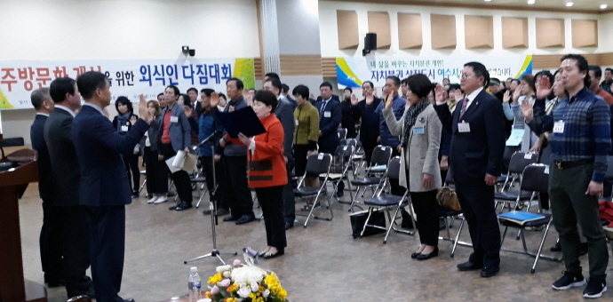 여수시지부 회원 200여 명은 이날 관광객의 만족도를 높일 수 있도록 서비스 수준을 높여 나가기로 결의했다.