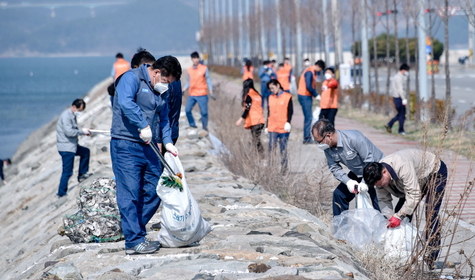 여수시와 여수국가산단 입주기업들이 봄을 맞아 여수국가산단 주변 대청소에 나섰다.