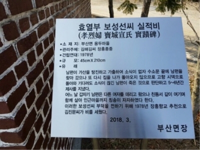 효열부 공적안내판 설치·‘효’ 의미 부각