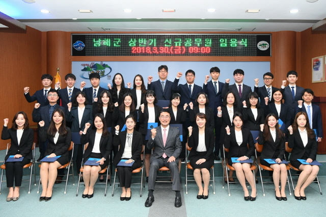 경남 남해군은 30일 군청 대회의실에서 신규 공무원 임용식을 가졌다.