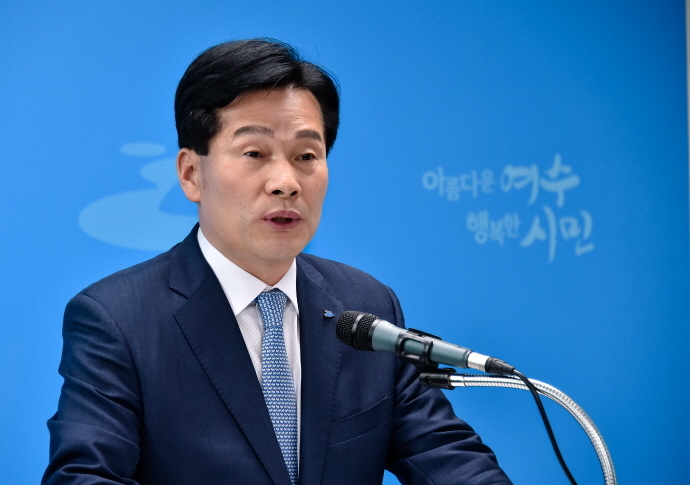 주철현 여수시장이 4월 1일 3려통합 20주년을 맞이해 기념사업 조례 제정과 사업기구의 설립 내용을 담은 성명서를 발표했다.