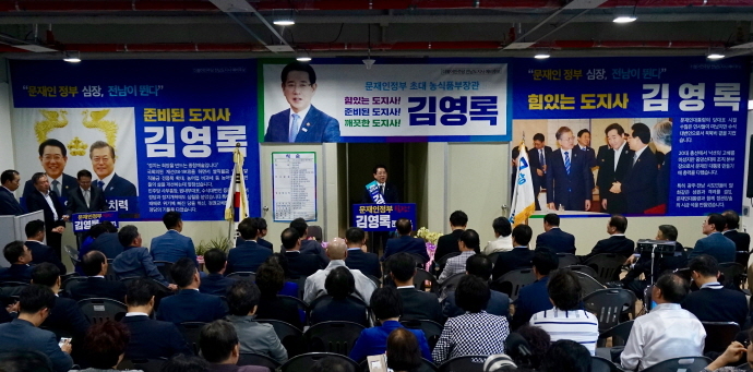 이 위원장은 “문재인 대통령이 민주정부, 진보정부, 더불어민주당 정부를 지탱할 기둥으로 김영록을 생각했기 때문에 초대 농식품부 장관에 임명한 것”이라며 “우리 전남의 온갖 현안을 해결하기 위해서는 그야말로 능력있는, 힘있는, 준비된 도지사가 필요하며 김영록이 바로 그 사람”이라고 거듭 강조했다.
