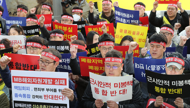 그러나 광해공단은 부채가 5조 2000억 원에 달하는 광물공사와 통합을 거부하거나 국회에 통합의 부당성을 알리는 등 통합반대 활동을 적극 펼쳐 나가거나 광해공단에 유리한 방향으로 통합을 추진할 전망이다.