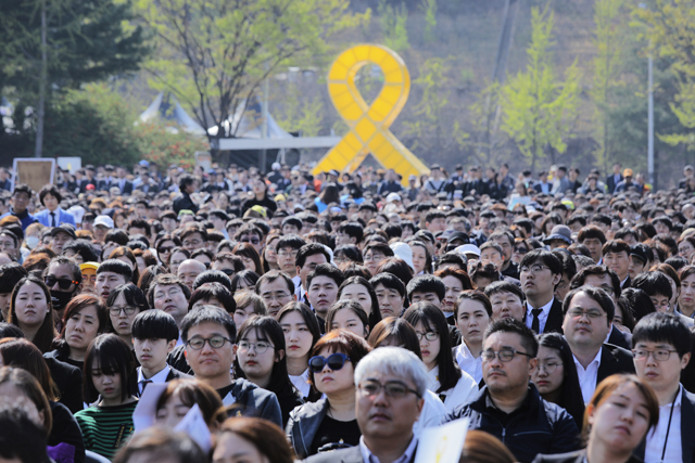 화랑유원지에는 경찰 추산 6000여 명의 시민이 기다리고 있었다. 분향소 앞에 마련된 무대에는 안산 지역 희생자 258명의 영정과 위패가 빼곡하게 걸려있었다.