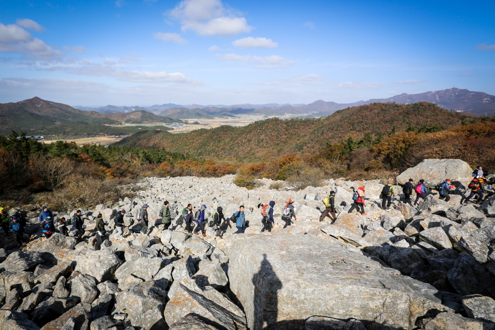 뒤로는 공룡의 등뼈같은 바위암릉이 이어지고, 앞으로 다도해의 전망이 한눈에 보이는 절경은 감탄사가 절로 나온다.