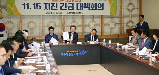 ▲ 포항시의 유발지진 주장에 대한 긴급 대책회의 모습 ⓒ 포항시
