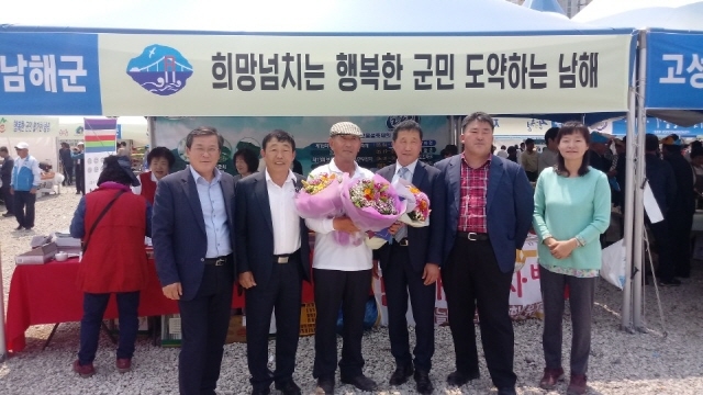 강윤성 남해군정보화농업인연합회장이 지난달 27일 진주혁신도시 한국세라믹기술원 공터에서 열린 제8회 경남정보화농업인 경진대회와 농산물 페스티벌 행사에서 경남도지사상을 수상했다.