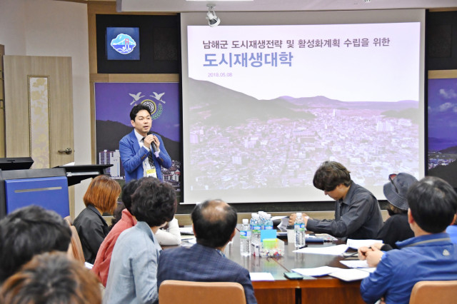 이어 남해군 도시재생 전략 및 활성화 계획의 용역을 맡고 있는 ㈜싸이트플래닝 이창민 실장의 진행으로 본격적인 수업이 진행됐다.
