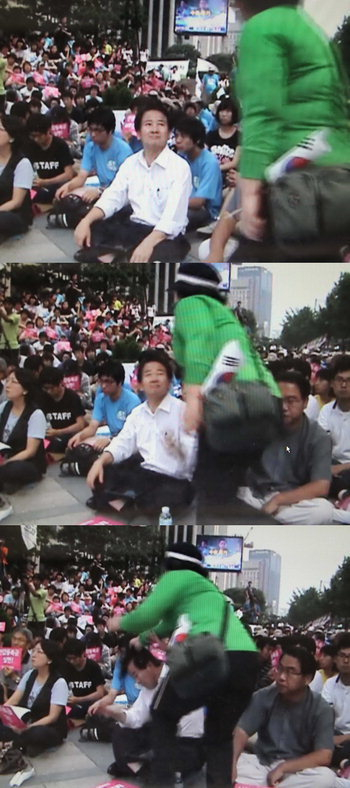 ▲ 정동영 최고위원이 폭행당하는 장면. ⓒ프레시안