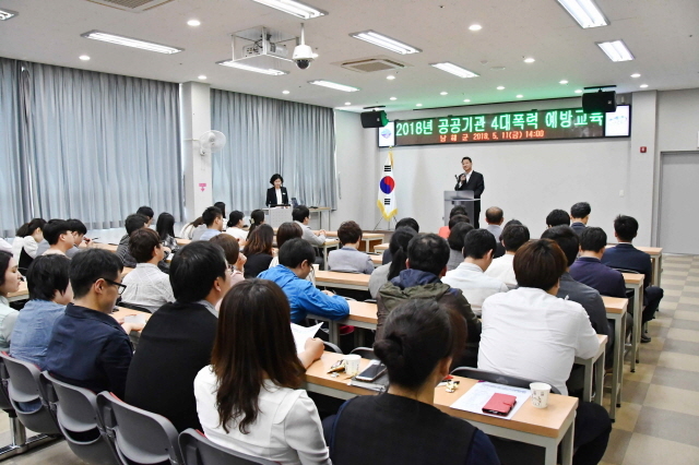 경남 남해군은 타인을 배려하는 직장문화 조성을 위해 군 노인복지관에서 공무원과 기간제 근로자, 사회복무요원 등 400여명을 대상으로 폭력예방교육을 실시했다고 14일 밝혔다.