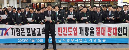 | ▲ KTX 기장들은 전날 민영화 반대 입장을 밝혔다. ⓒ연합 |
