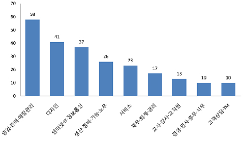 | ▲ 올해 300인 이하 사업장에서 새로 채용한 비정규직의 직종 분포. 세로축은 응답수. ⓒ인크루트 |