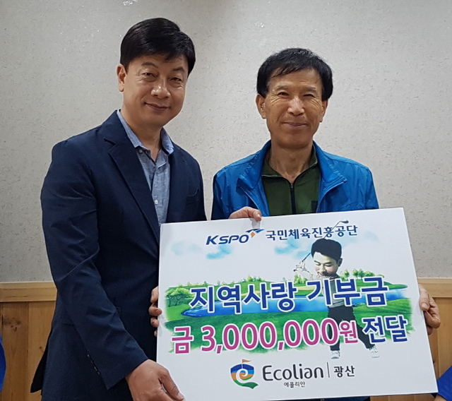 국민체육진흥공단 에콜리안 광산골프장은 20일 골프장 인근 지역인 연산동 3개마을 주민위원회를 방문, 주민복지와 마을발전을 위한 지역사랑 발전기금 300만원을 전달했다.